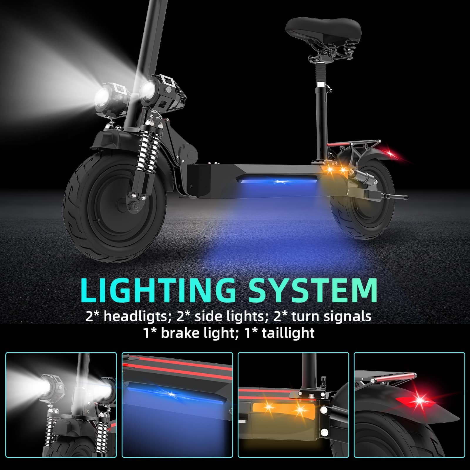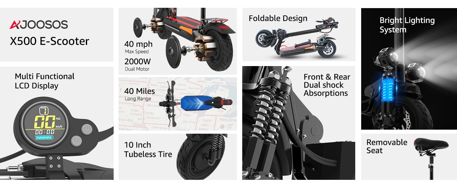 - 【40 MPH Fast Speed】: The X500 electric scooter with seat equipped with 2000W dual motor, the maximum speed can reach 40 MPH. You don’t have to worry about traffic jams and being late for work or school. The climbing angle is 40 degrees, easy to climb. There are 3-speed gears and 2 driving modes, which you can choose according to different road conditions.