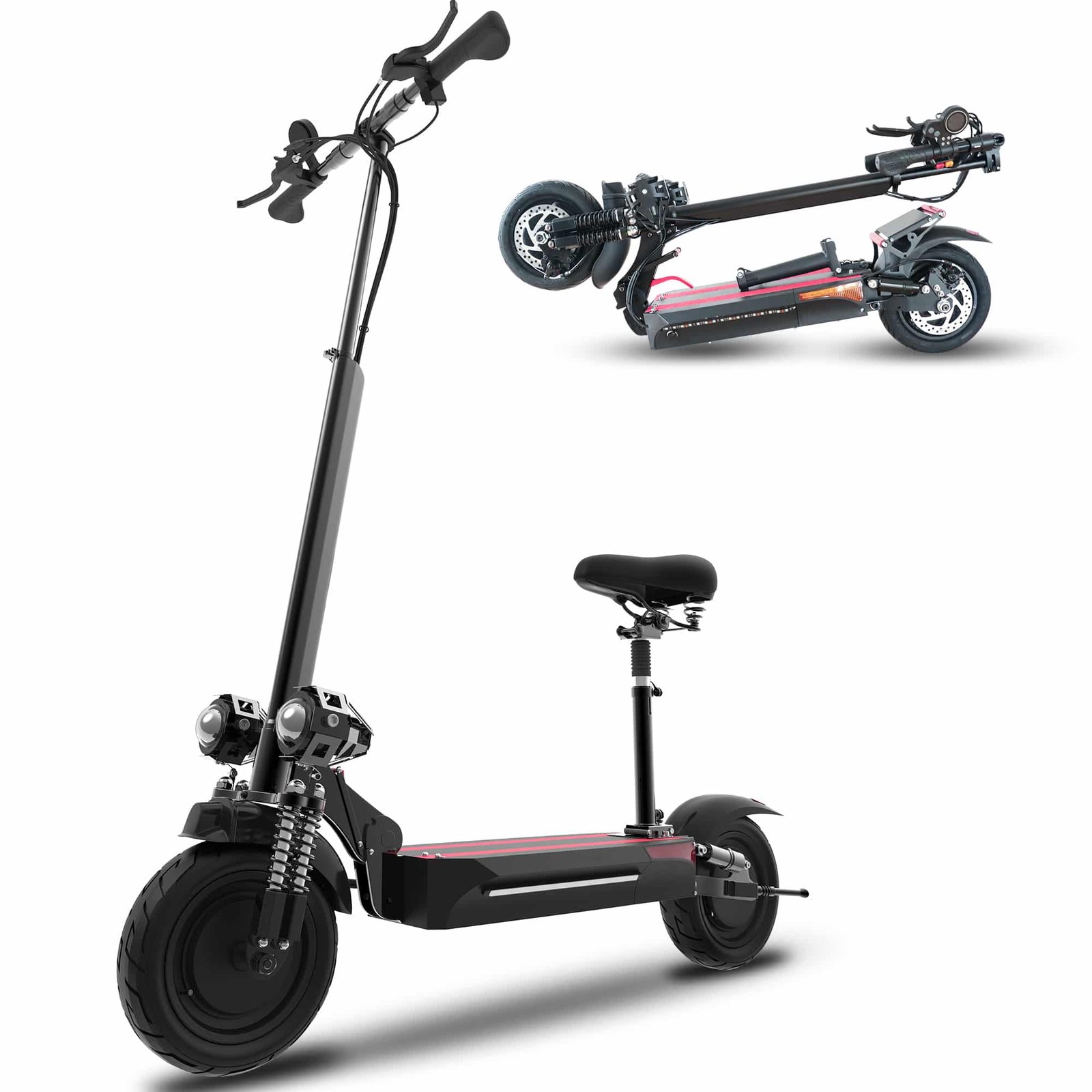 - 【Smooth & Comfortable Riding】: The front and rear of the scooter are designed with SHOCK ABSORPTION. Even if the road is uneven, the scooter will bring you maximum comfort. The 9-inch width board will not make you feel cramped when you are standing on the scooter. The height of the handlebar and seats can be adjusted. You can always adjust the scooter to a height suitable for you.