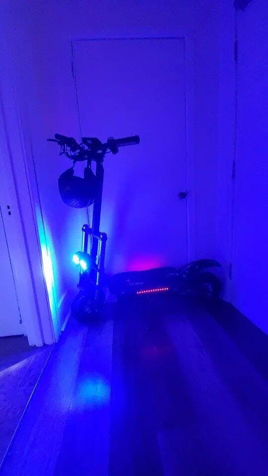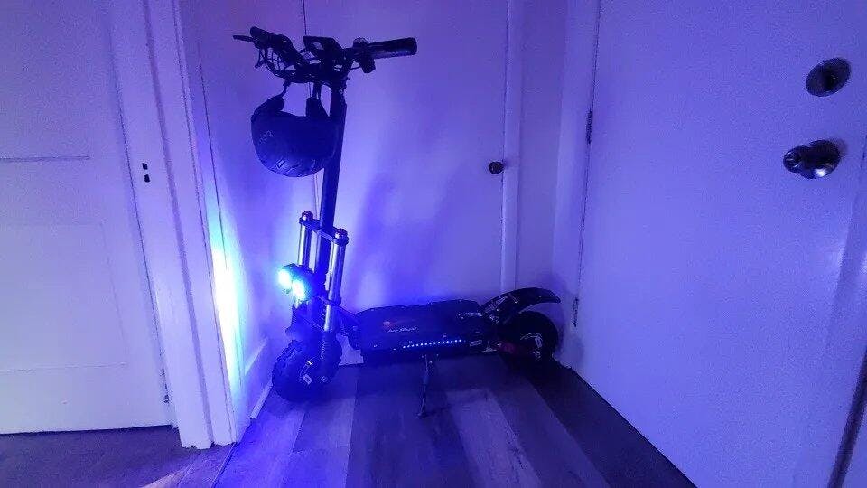 The X60 electric scooter is equipped with 6000W dual motors (3000W front + 3000W rear) and can reach a maximum speed of 50 MPH. With a 50-degree climbing angle and 11” off-road tires, the X60 climbs hills very easily. When you turn on the dual-drive mode and switch the speed gear to the 3rd gear, the scooter can reach the top speed. At 50 MPH, other vehicles can only see the rear taillight of your scooter.